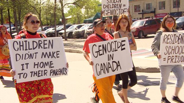 “I think that’s an insult to our people, because they’re the ones that snatched us from our homes,” Barb Guimond said before a march in support of residential school survivors at The Forks in Winnipeg on Thursday.