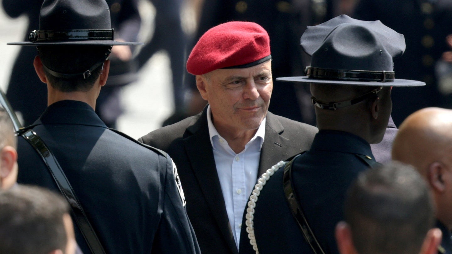 Curtis Sliwa arrives for the funeral services for New York City Police Department (NYPD) officer Didarul Islam in the Bronx borough of New York City on July 31, 2025. (REUTERS/Jeenah Moon)