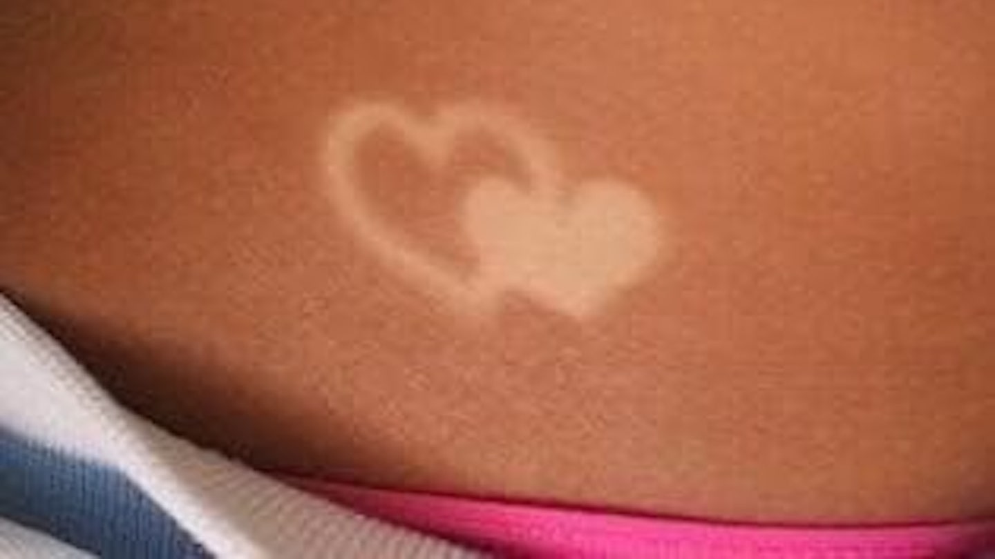 “Suntan tattoos” means that you are burned while wearing stickers, tape or sunscreen to make artistic designs. (Amazon)